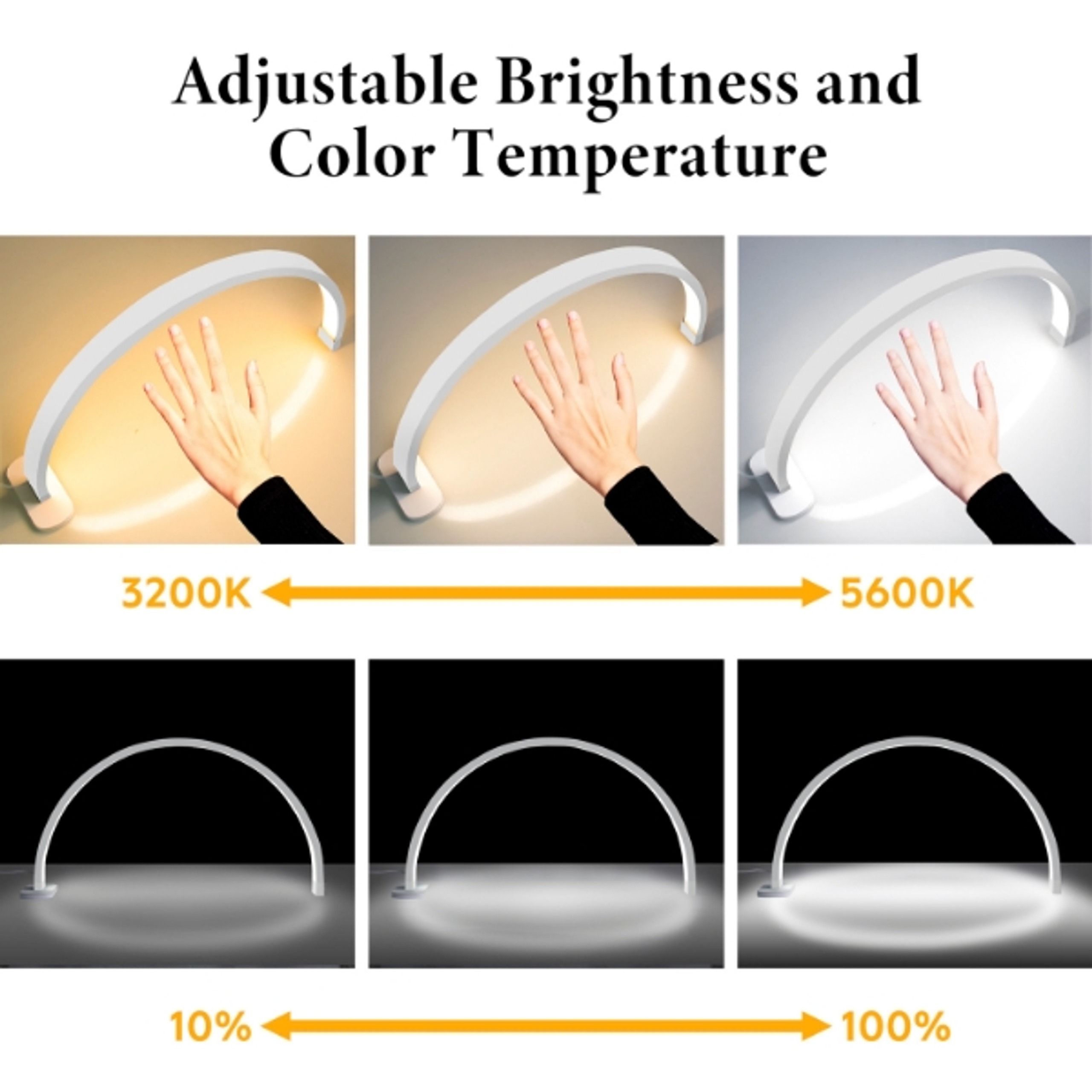 Adjustable Brightness & Tone – The led nail light has 2 settings to adjust brightness and tone which are conveniently placed on the side of the Arch LED Nail Table Lamp for nail technician, so you won’t have to stretch to reach it. The brightness can be adjusted from 0% to 100%, and the tone can be set in the range of 2700K (warm light) and 5600K (daylight).