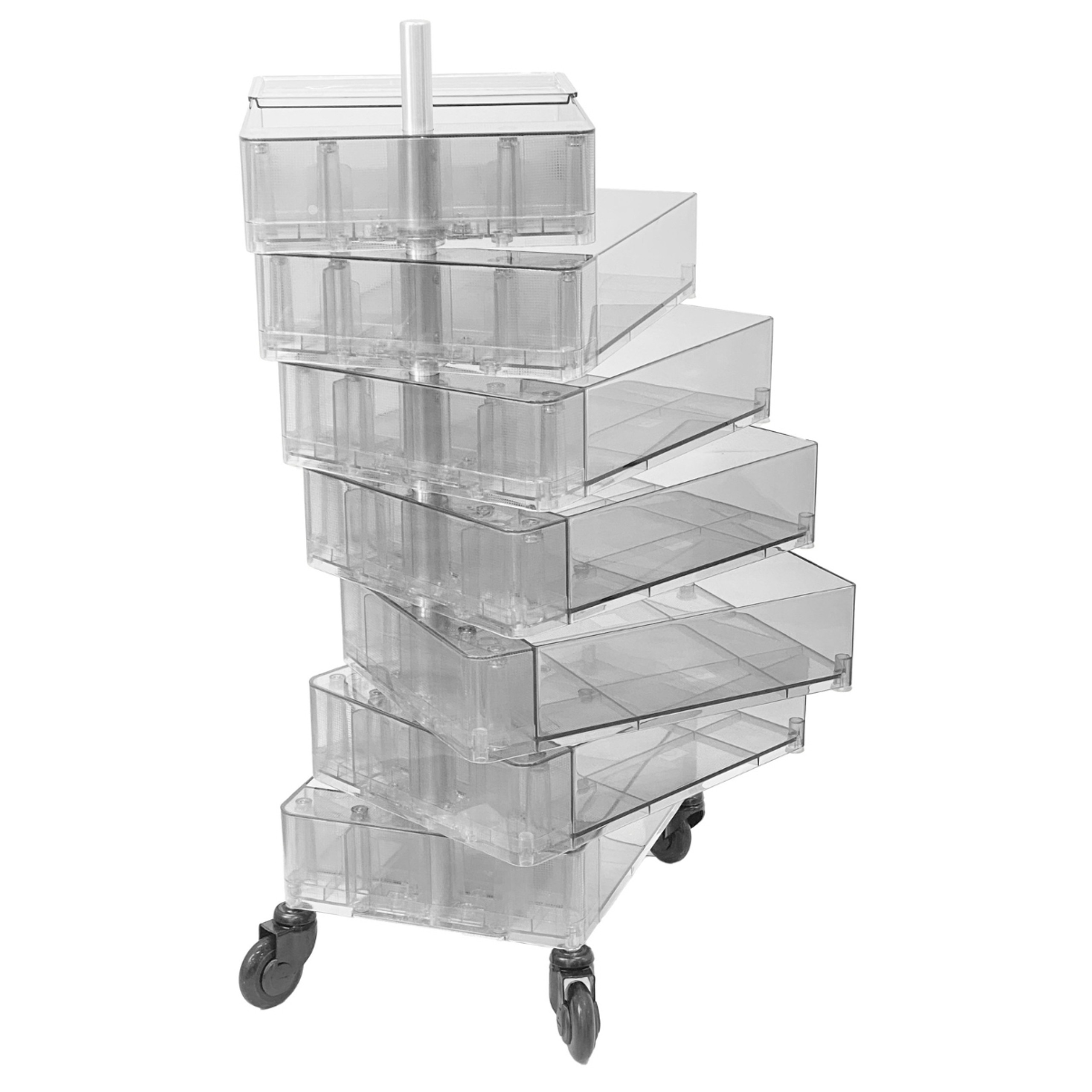 Introducing the Aries 7 Tier Hairdressing Beauty Salon Trolley… 7 Drawer 360 degree rotating unit – the embodiment of functionality and style for all your Salon storage needs! This innovative unit is designed to seamlessly blend practicality with a touch of modern elegance, offering a perfect solution for organizing your Salon space.