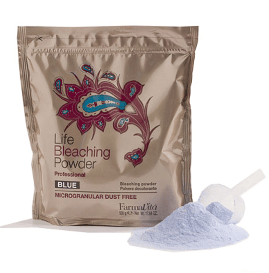 FarmaVita Life Bleaching Powder Blue is a blue bleaching powder dust free with parfume. The high quality ingredients gurantee excellent results and it allows to work in safe. Life bleaching powder is ideal for all kind of lightening procedure, since it could be used with different types of Peroxide (Life 20-30-40 Vol.) High lightening power, bleaches up to 6 tones