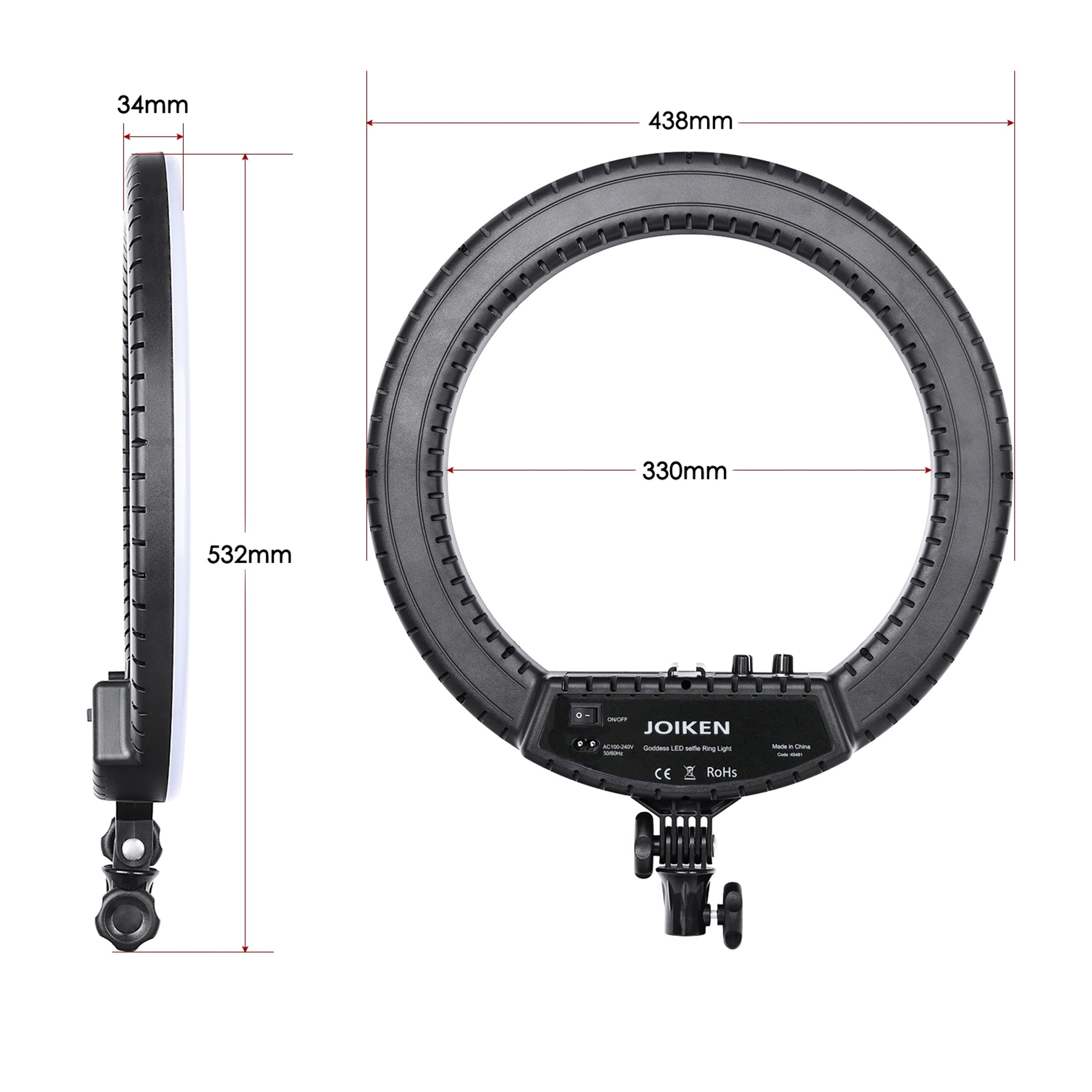 • Dimmable 3200K-5600K colour temperature Ring Light with a wide dimming range from 1%-100%.