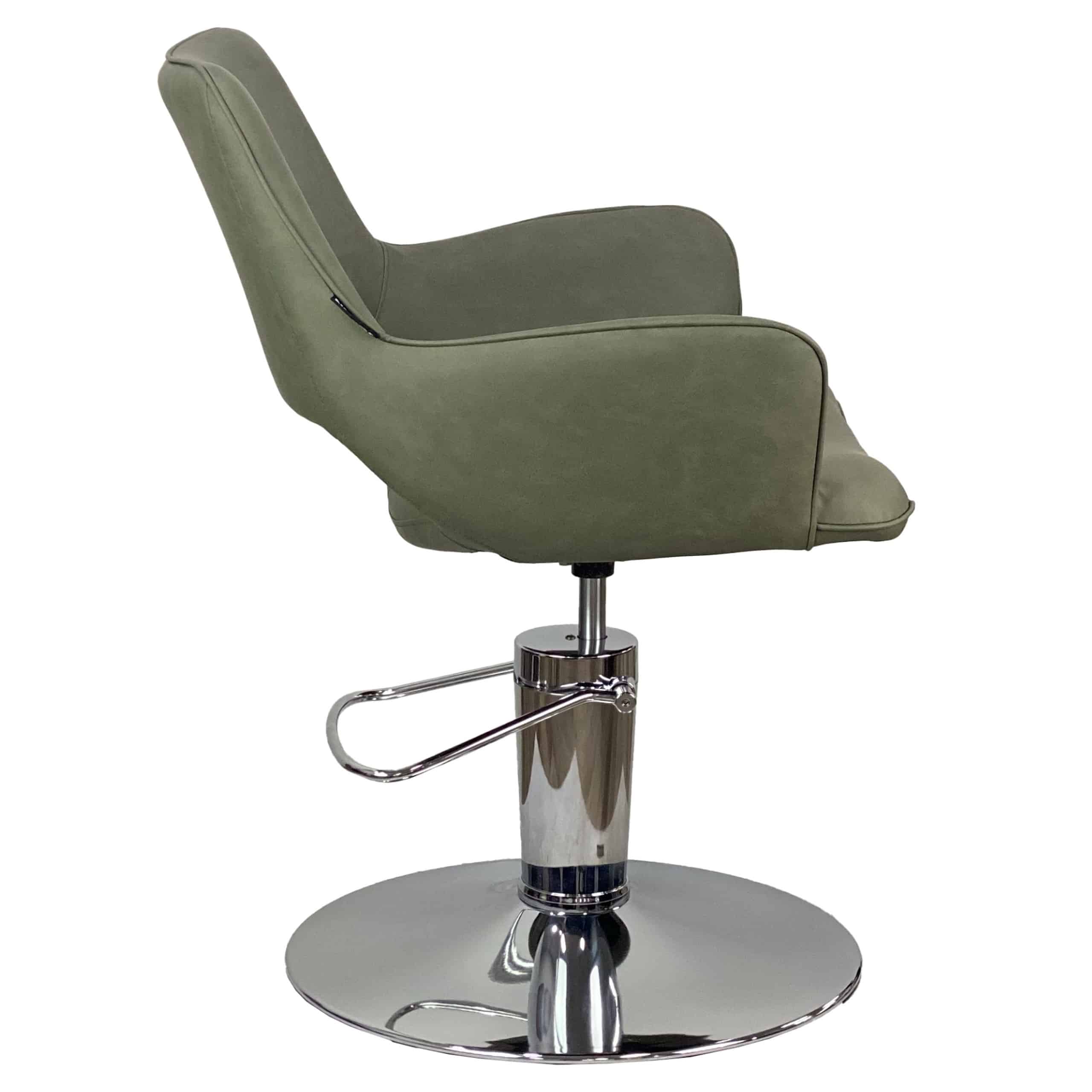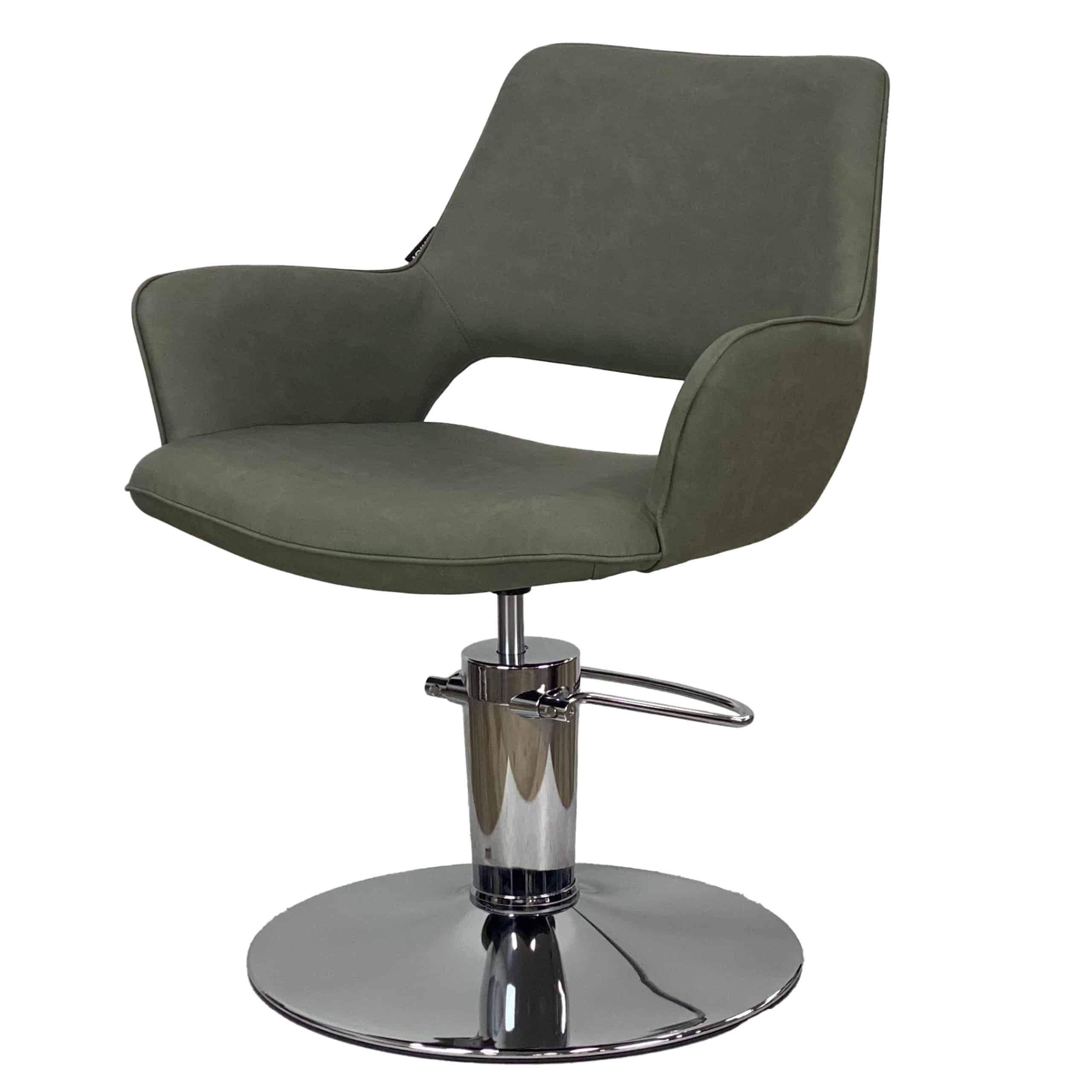 ntroducing the Indigo Styling Chair, a pinnacle of style and comfort designed to elevate your salon experience. Available in a chic NEW Forest Green upholstery, also available in Tan, Sand or classic Black upholstery, this chair combines contemporary aesthetics with ergonomic excellence.